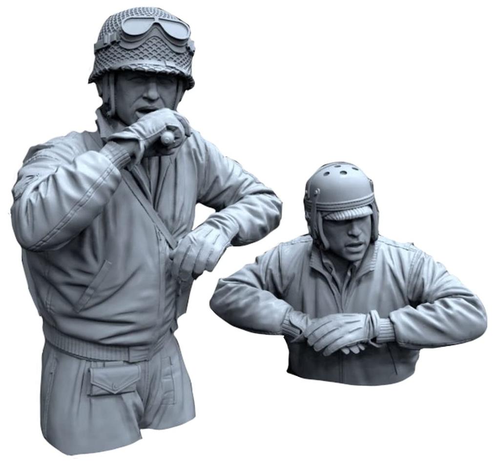 1/16 scale unpainted resin assembly kit. Includes two figures: a commander leaning out of the cupola and issuing instructions through a microphone, and a crew member with both arms protruding from the hatch, keeping watch ahead. Unpainted. Includes two resin figures.