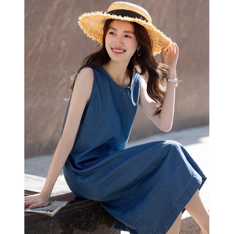 Demana Cloud Cotton Retro Sleeveless Denim Midi Dress