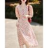 SanCai French Square Neck Floral Chiffon Maxi Dress