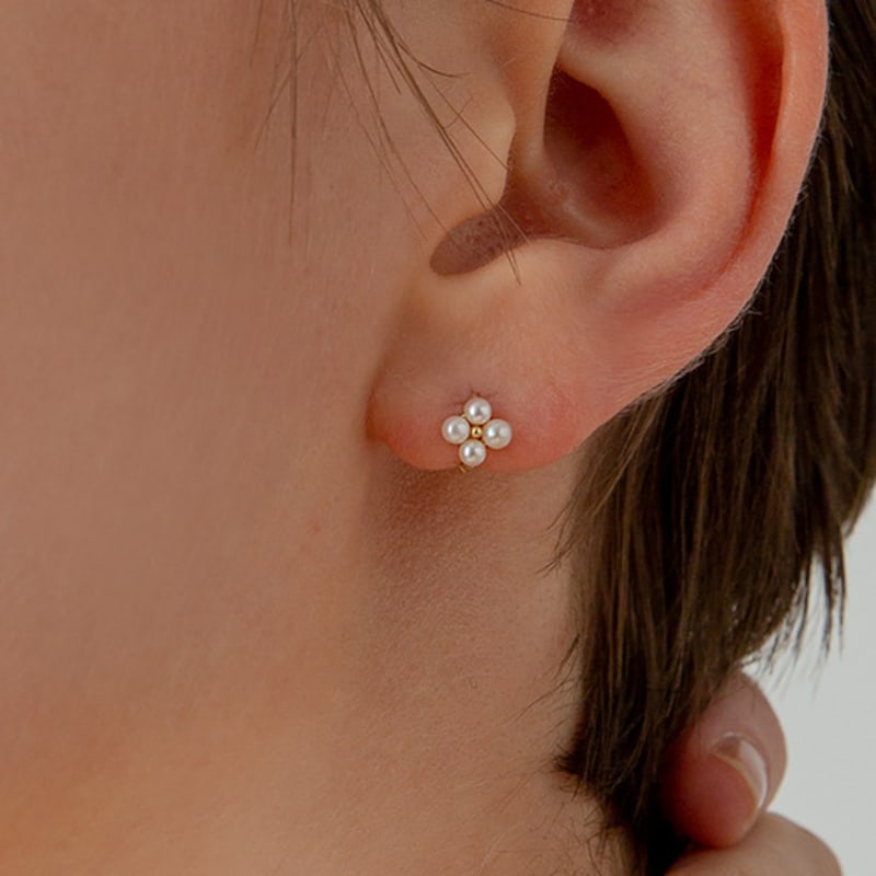 LUNNE 14k Mini 4-Pearl Hoop Earrings (14k Gold) #ER06