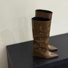 Vintage Spice Girls Knight Boots Wedge Heel Pants Boots Belt Buckle Boots 2025 Autumn and Winter Pointed Height Increasing Western Cowboy Boots