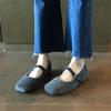 Nie, nie zmęczone stopy! Francuskie buty Mary Jane damskie 2025 nowe szare wełniane na jeden pasek z kwadratowym noskiem na płaskiej podeszwie z płytkim wycięciem czółenka