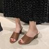 Celebrytka fajne kapcie damskie na średnim obcasie jesień 2025 nowe modne wszechstronne jedno pasek grubszy obcas wysoki obcas rybi pysk kapcie