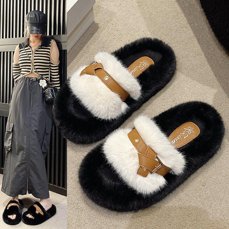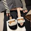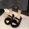 Cross thick-soled one-word drag with retro cotton drag new soft-soled home Internet celebrities autumn and winter wear 2025 Mao Mao shoes women