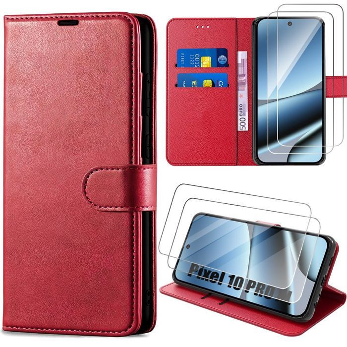 Coque de Protection - E.F.Connection - pour Google Pixel 10 Pro XL - Antichoc Synthécuir Rouge - 2 Vitres