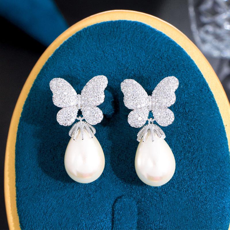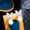 Francuskie kolczyki z perłami, słodkie temperamentne trójwymiarowe kolczyki sztyfty z cyrkoniami mikro-inlayowanymi, super bajkowe kolczyki.