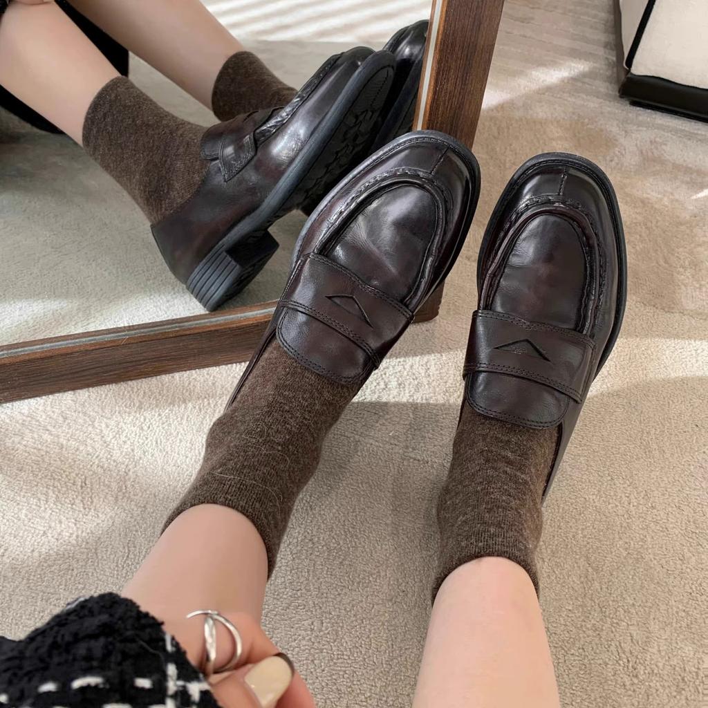 Cowhide version~ British style Oxford shoes round head one-pedal loafers women's leather low-heeled single shoes old small leather shoes