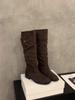 Francuskie zamszowe botki na grubym obcasie w kolorze morelowym damskie buty 2025 nowe wiosenno-jesienne zimowe wszechstronne cienkie długie kozaki