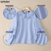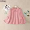 VONDA Women Casual Turn Down Collar Flare Sleeve Casual Loose Blouse