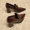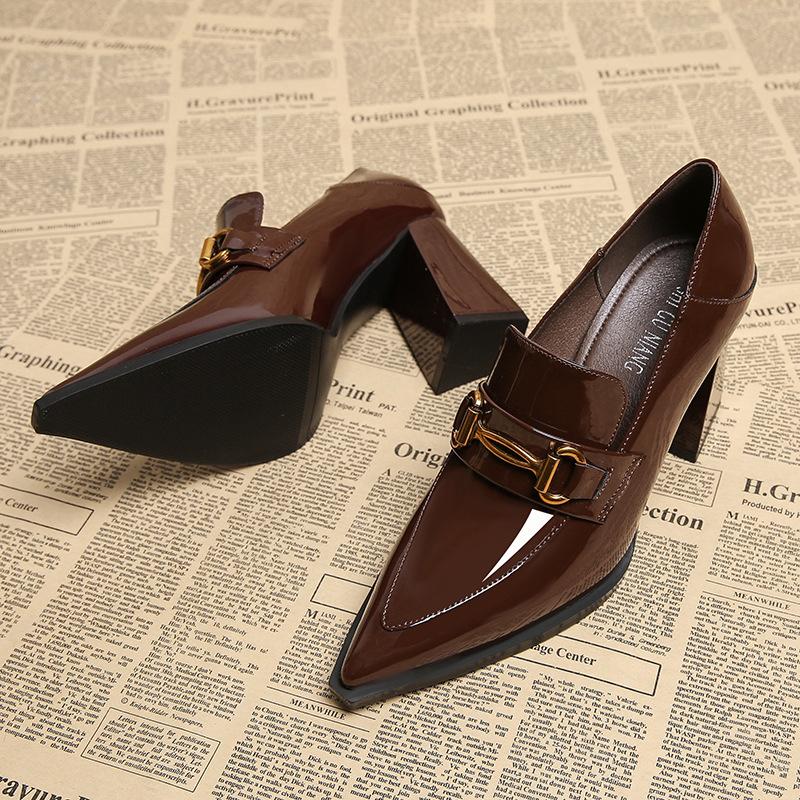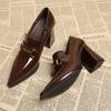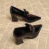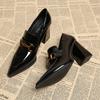 7912-2 Spring deep-mouth thick-heeled single shoes 2025 popular commuter uniform versatile pointed high-heeled small leather