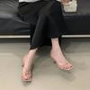 Niche thin strap square head open-toed high-heeled sandals girl 2025 spring and summer new one-word strap thin heel temperament light mouth slippers