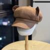 Jesień i Zima Nowa Flokowana Tkanina Uszy Kota Ośmiokątny Kapelusz dla Kobiet Słodki Niszowy Pokazujący Twarz Wszechstronny Kapelusz Malarza z Daszkiem