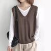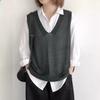 Retro Jednolity Kolor Dekolt w Serek Dzianinowa Kamizelka Damska Wiosna i Jesień Literatura i Sztuka Luźny Uniwersalny Sweter Kamizelka Bezrękawnik Damski