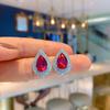 Symulacja kamieni szlachetnych Korund Rubin Gołębiej Krwi Kształt Kropli Wody, Zestaw Biżuterii Kolczyki Sztyfty 8 * 12 Wiszące