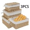 3Pcs Cotton Linen Woven Storage Basket Handwoven with Lid Cosmetic Towel Container Storage Box Household Baskets
