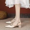 Nude high heels women's summer French thick heel pointed head rivet bag head empty sandals 2025 new foreign style
