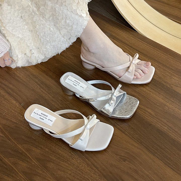 Coarse heel French cool slippers women's outer wear 2025 new temperament summer evening with skirt medium heel strappy sandals