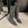 Retro szpiczasta klamra z westernowymi kowbojkami damskimi 2025 jesień i zima nowe szeroka cholewka wąski krój długie buty