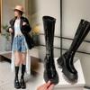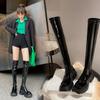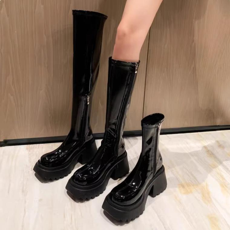 Patent leather waterproof platform thick-soled short boots heightening long boots women's thick heel knee boots women's high boots elastic boots wome