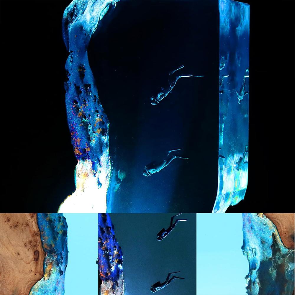 Resin LED Ocean Surfing Night Lights Handmade Wooden Resin Bedside Table Lamp 3D Art Ornaments For Office Bedroom Room Party