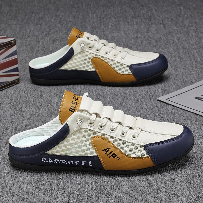 Baotou slippers men's summer wear breathable mesh lazy one pedal half tray heelless casual beach sandals