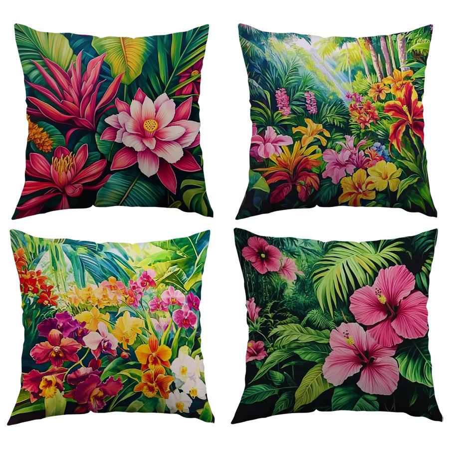 Plant Flower Print Pillow Cover Bedroom Window Sill Bay Window Pillow Cushion Cover Square Pillow Cover Short Plush