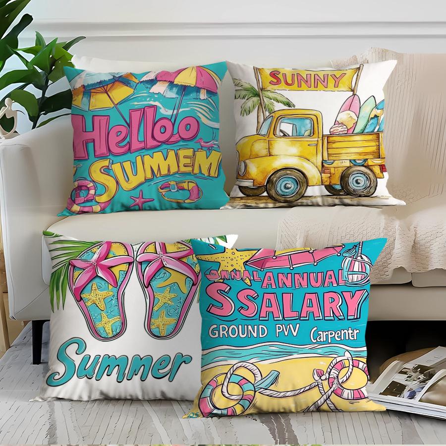 Simple and Cute Throw Pillow Cover, Short Plush Print, Summer Cushion Cover, Home Living Room Sofa Decoration Pillow Cover, Cushion Cover