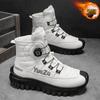 Winter new outdoor leisure cold-proof velvet thickened high-top cotton shoes rotating button trend versatile large size men's shoes