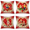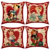 Valentine's Day Pillow Cover Red Heart Puppy Retro Pillow Cover Decoration for Sofa Bedroom Living Room Cushion Cover