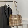 Autumn and winter large-capacity plaid bag women's tote bag versatile commuter shoulder bag woolen 2025 autumn and winter new women's bag