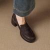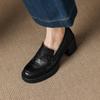 New high-heeled women's single shoes solid color sheepskin comfortable thick-soled non-slip low-top women's shoes large size four-season loafers