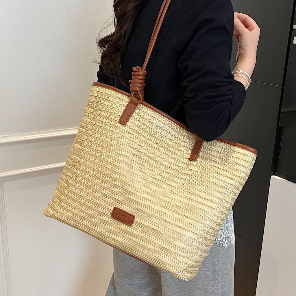 2025 summer simple and versatile beach bag wholesale casual shoulder bag premium texture straw woven tote bag