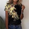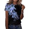 Round Neck 3D Flower Printed T-shirts Fashionable Short Sleeved Women's T-shirts - Soft Medium Stretch Polyester Fabric Summer Relaxed Fit Clothing