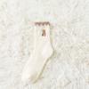 Solid Color Embroidery Bear Girls Mid-tube Socks Female Hosiery Coral Fleece Socks Cute Floor Socks