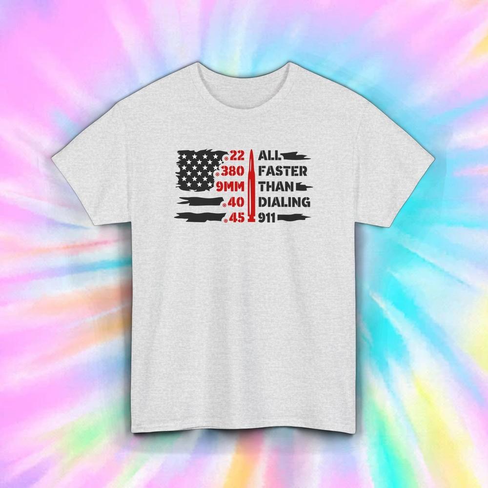 Faster Than Dialing 911 T-Shirt | Gun Lover Graphic Tee | USA Flag | S-5XL