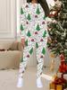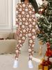 Damski 2-częściowy strój ze świątecznym nadrukiem: Top z długim rękawem z okrągłym dekoltem i spodnie, świąteczny limitowany casualowy strój na imprezę, prezent