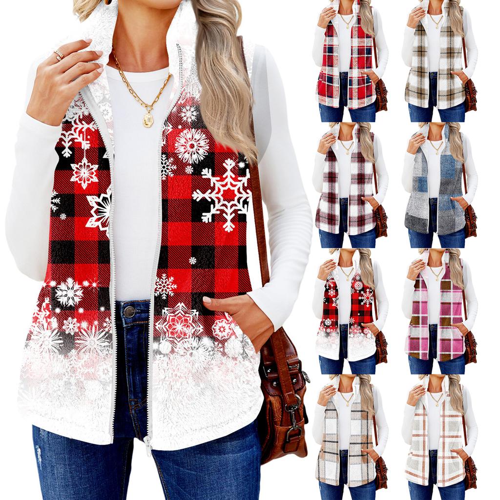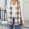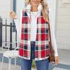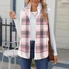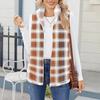 Damska modna i ciepła kamizelka kardiganowa z polaru w kratę