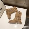 Krowia skóra licowa polerowane krótkie botki damskie klamra paska retro stare pojedyncze botki jesień i zima nowe okrągły nosek gruby średni obcas wsuwane botki damskie
