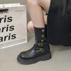 Boots Women's 2025 Autumn and Winter New Two Wear Fold But Knee High Martin Boots British Skinny Motorcycle Boots