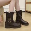 Retro okrągły nosek wszechstronne grube obcasy buty typu Martens 2025 nowy brytyjski styl klamra pasek Maillard średnie buty damskie