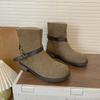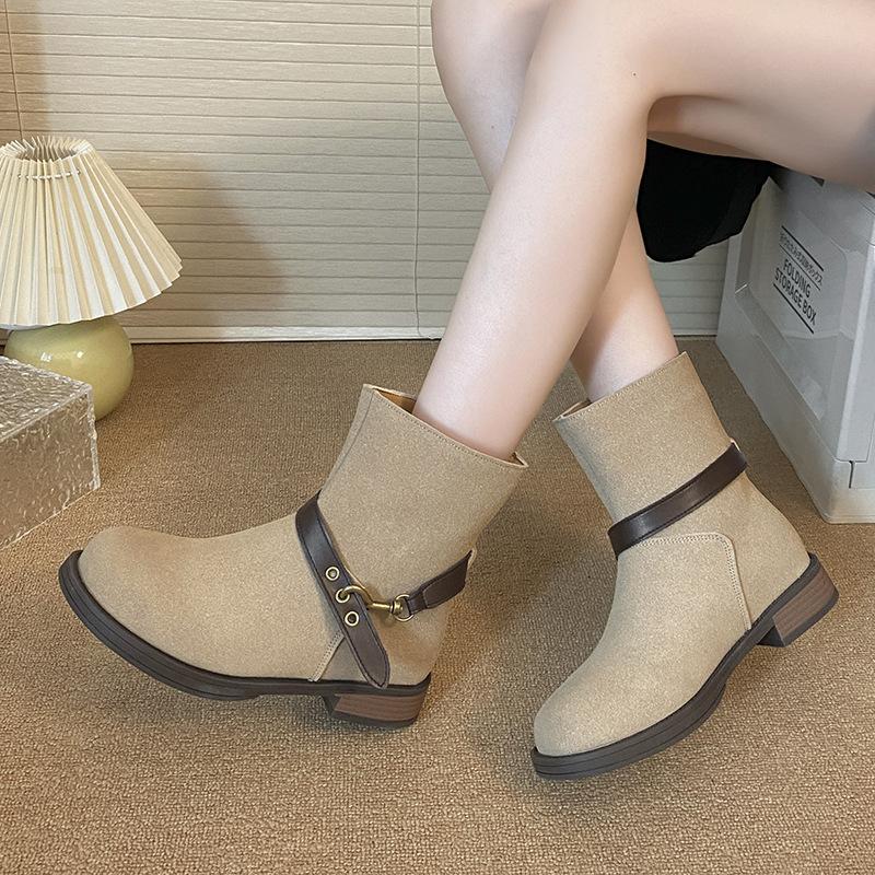 American belt buckle round head fashion boots high sense 2025 autumn and winter new retro thick heel locomotive boots women's boots