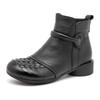 Leather warm round head mother Martin boots winter new thick heel hand-woven retro short boots women