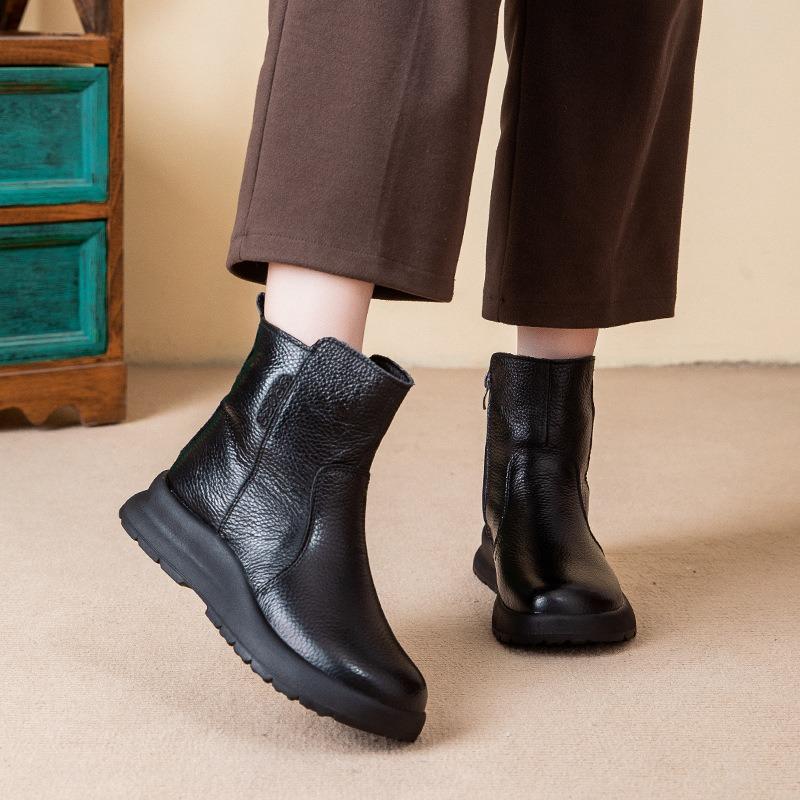 Zima nowe skórzane buty Martin damskie z bocznym zamkiem płaska podeszwa obcas ze spadkiem buty bawełniane dla mamy casualowe ciepłe buty śnieżne damskie