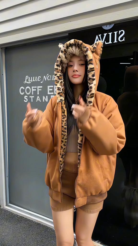 Modne damskie parki Zimowe kurtki z kapturem Luźne Plus Size Grube Ciepłe Okrycia wierzchnie Płaszcze damskie