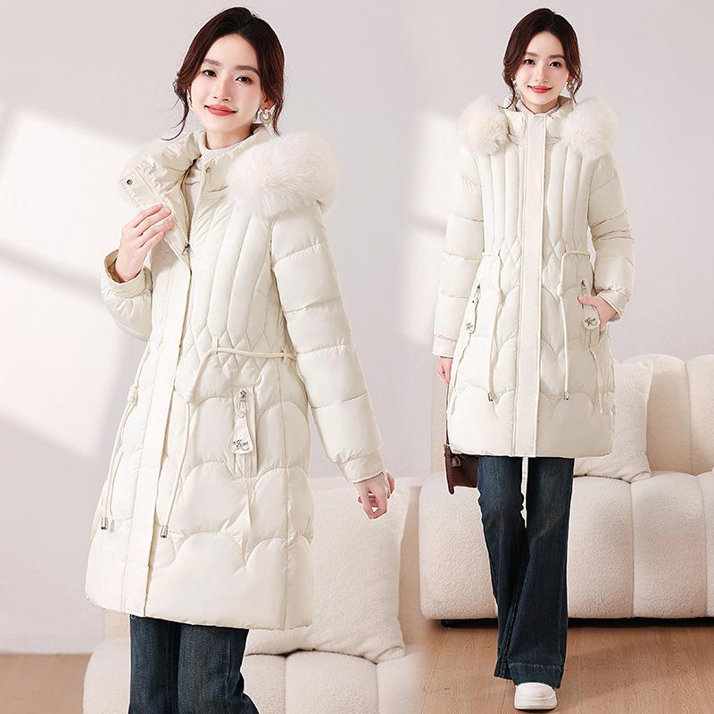 New winter long women's slim-fitting cotton-padded clothes, thin waist thickened cotton-padded clothes, fur collar cotton-padded jacket, women's