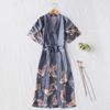 Ten elegancki szlafrok został zaprojektowany dla panien młodych i druhen poszukujących wygody i stylu.. Wykonany z tkaniny w stylu jedwabiu, ma piękny nadruk z żurawiami, który dodaje odrobinę wyrafinowania.. Materiał zapewnia oddychalność i luksusowy dotyk skóry, dzięki czemu idealnie nadaje się do wylegiwania się na specjalne okazje.. Jego płynny krój i miękka faktura zapewniają najwyższy komfort, niezależnie od tego, czy przygotowujesz się na ten wielki dzień, czy relaksujesz się po nim.