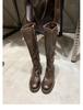 Wyprawiona skóra bydlęca~ skóra naturalna czarne retro botki wszechstronne i wysmuklające gruby obcas jeździeckie botki damskie wysokie botki
