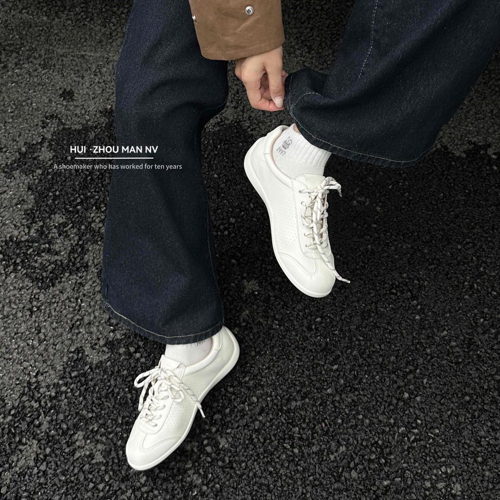 Wersja ze skóry bydlęcej~ Nowe jesienne skórzane sportowe małe białe buty damskie na platformie niemieckie buty treningowe buty Forresta Gumpa codzienne buty deskorolkowe