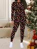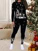 Damski 2-częściowy strój ze świątecznym nadrukiem: Top z długim rękawem z okrągłym dekoltem i spodnie, świąteczny limitowany casualowy strój na imprezę, prezent