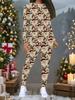 Damski 2-częściowy strój ze świątecznym nadrukiem: Top z długim rękawem z okrągłym dekoltem i spodnie, świąteczny limitowany casualowy strój na imprezę, prezent